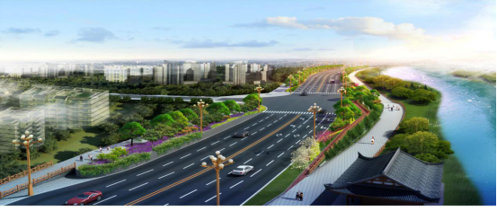 建設(shè)規(guī)模及內(nèi)容:道路總長(zhǎng)約8000米,路幅寬度70米,兩側(cè)各控制30米綠化帶,含立交節(jié)點(diǎn)4座。